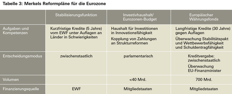 Die Tabellen 2-4 geben einen Überblick über die Reformpläne Frankreichs, Deutschlands und der Europäischen Kommission.