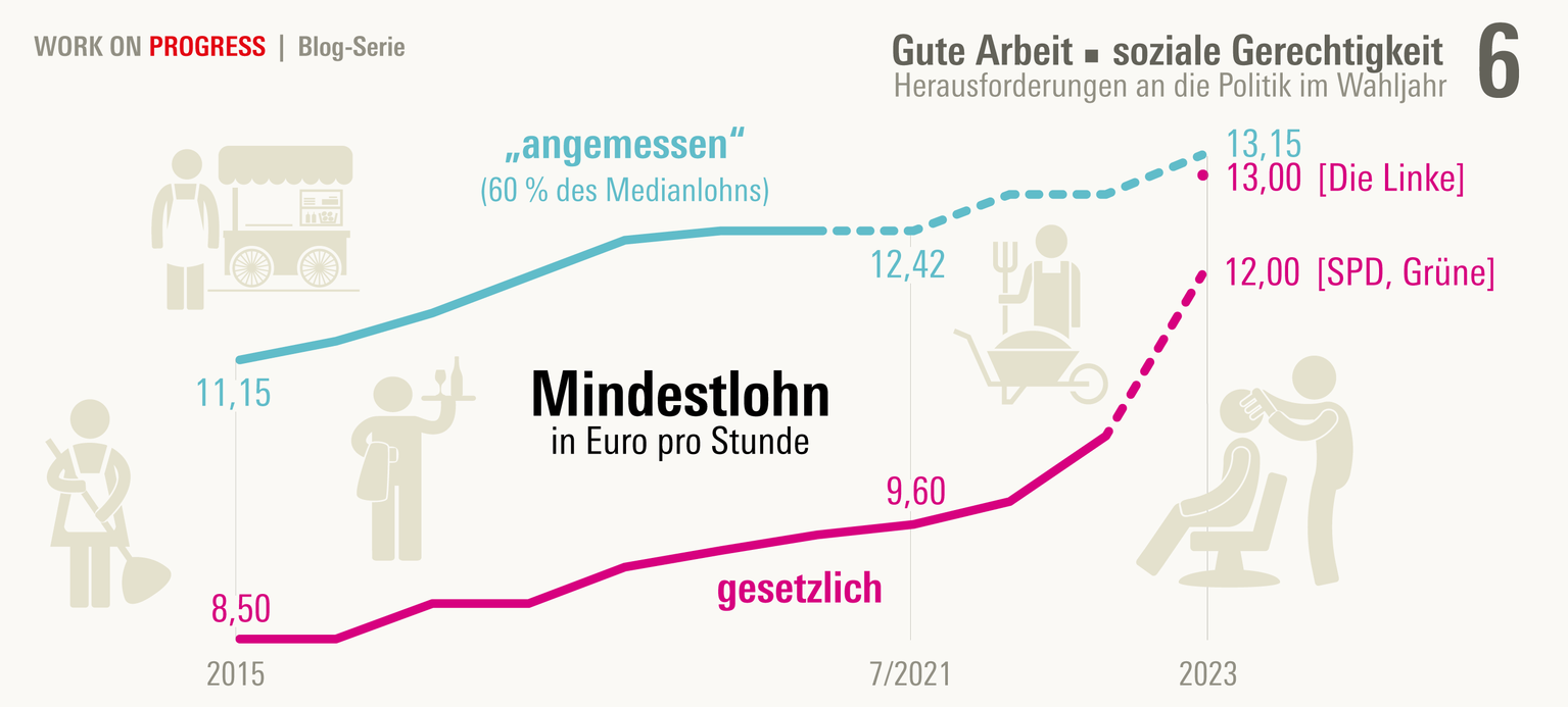 Der Ausgang der Bundestagswahl wird einen entscheidenden Einfluss auf die zukünftige Entwicklung des deutschen Mindestlohnregimes haben. Am eindeutigsten ist die Perspektive, wenn die zukünftige Bundesregierung von einer Koalition der Mindestlohnreformer, d.h. einem rot-grünen oder rot-rot-grünen Bündnis geformt wird. In diesem Fall ist eine relativ schnelle Erhöhung auf 12 Euro und darüber hinaus eine Weiterentwicklung des Anpassungsmechanismus zu erwarten. Sollte sich die nächste Bundesregierung hingegen aus Verteidigern des alten Mindestlohnregimes und Reformern zusammensetzen, so wären wiederum neue Kompromisslinien notwendig. Diese könnten z.B. bei einer zeitlichen Streckung der Mindestlohnerhöhung oder einer finanziellen Kompensation betroffener Unternehmen liegen. Außerdem wäre in diesen Fall eine Erweiterung des Anpassungsmechanismus im Sinne eines zusätzlichen Kriteriums für die Angemessenheit des Mindestlohns, wie es die EU-Kommission vorschlägt, eher unwahrscheinlich.