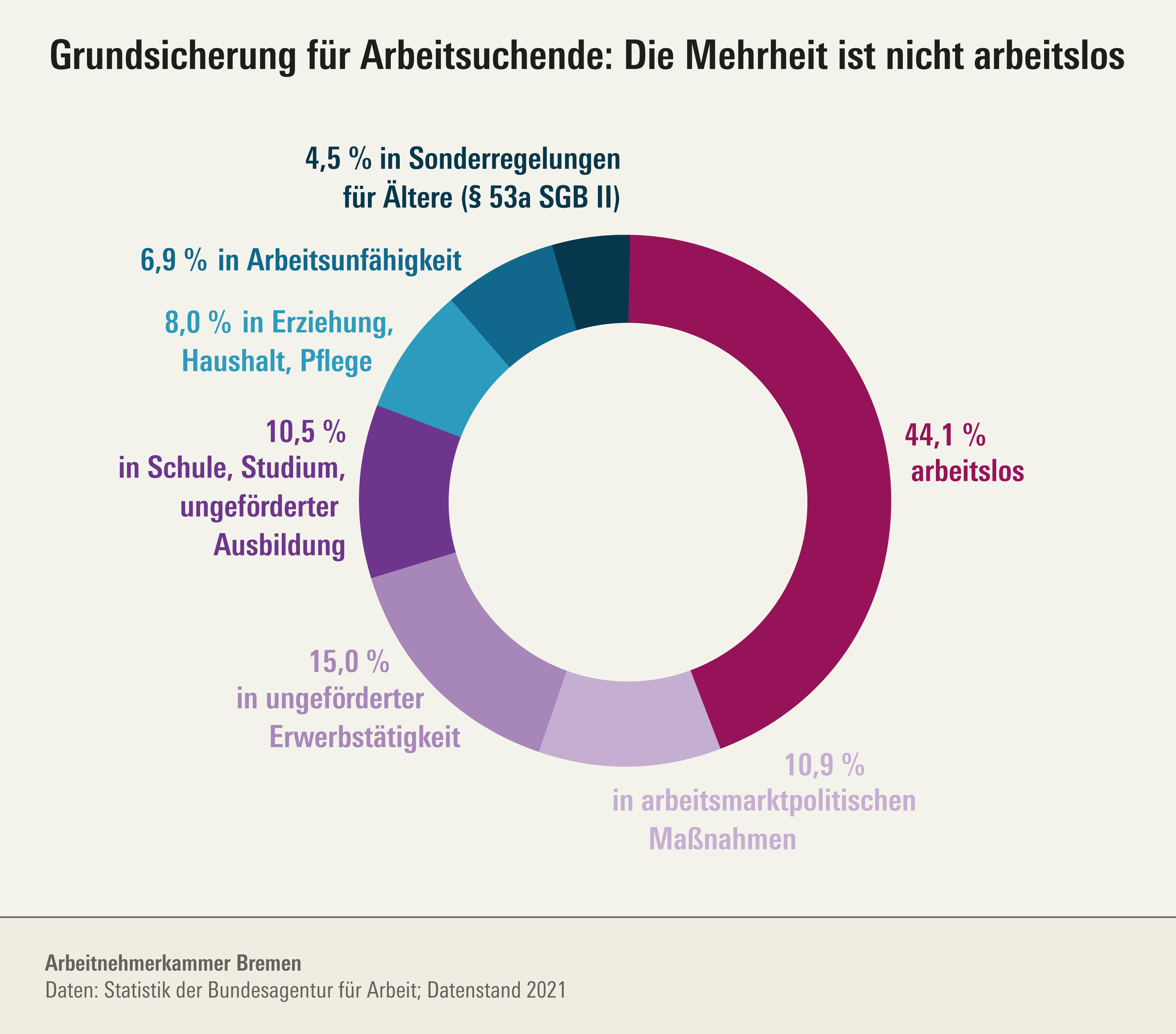 Allerdings hätte dem Bürgergeld-Gesetz eine noch stärkere sozialpolitische Konturierung in Abgrenzung zu Hartz IV gut getan, denn die Vielfalt der Menschen, die Leistungen beziehen und die in der Mehrheit aus guten Gründen gar keine Arbeit suchen, ist groß: Sie reicht von Kindern und jungen Menschen in Schule, Ausbildung oder Studium über Erwerbstätige, deren Verdienst nicht ausreicht, oder Personen mit Betreuungsverantwortung für Kinder oder zu pflegende Angehörige bis zu Menschen mit längerfristigen gesundheitlichen Problemen. Die Unterstützungsanforderungen an die Grundsicherung gehen daher weit über die klassische Arbeitsmarktpolitik zur Integration in den Arbeitsmarkt hinaus und müssten eigentlich unterschiedlichste Lebensphasen, Lebenslagen und -situationen adressieren. Das neue Instrument der ganzheitlichen Betreuung (Coaching) reflektiert diese Situation, der Entwurf des Bürgergeld-Gesetzes schafft es aber nicht, über das arbeitsmarktpolitische Ziel der Beschäftigungsfähigkeit hinauszudenken. Auch die kommunalen Eingliederungsleistungen Sucht- und Schuldenberatung, psychosoziale Betreuung und Kinderbetreuung werden mit der Reform nicht von ihrer einseitigen Bindung an arbeitsmarktpolitische Ziele befreit.
