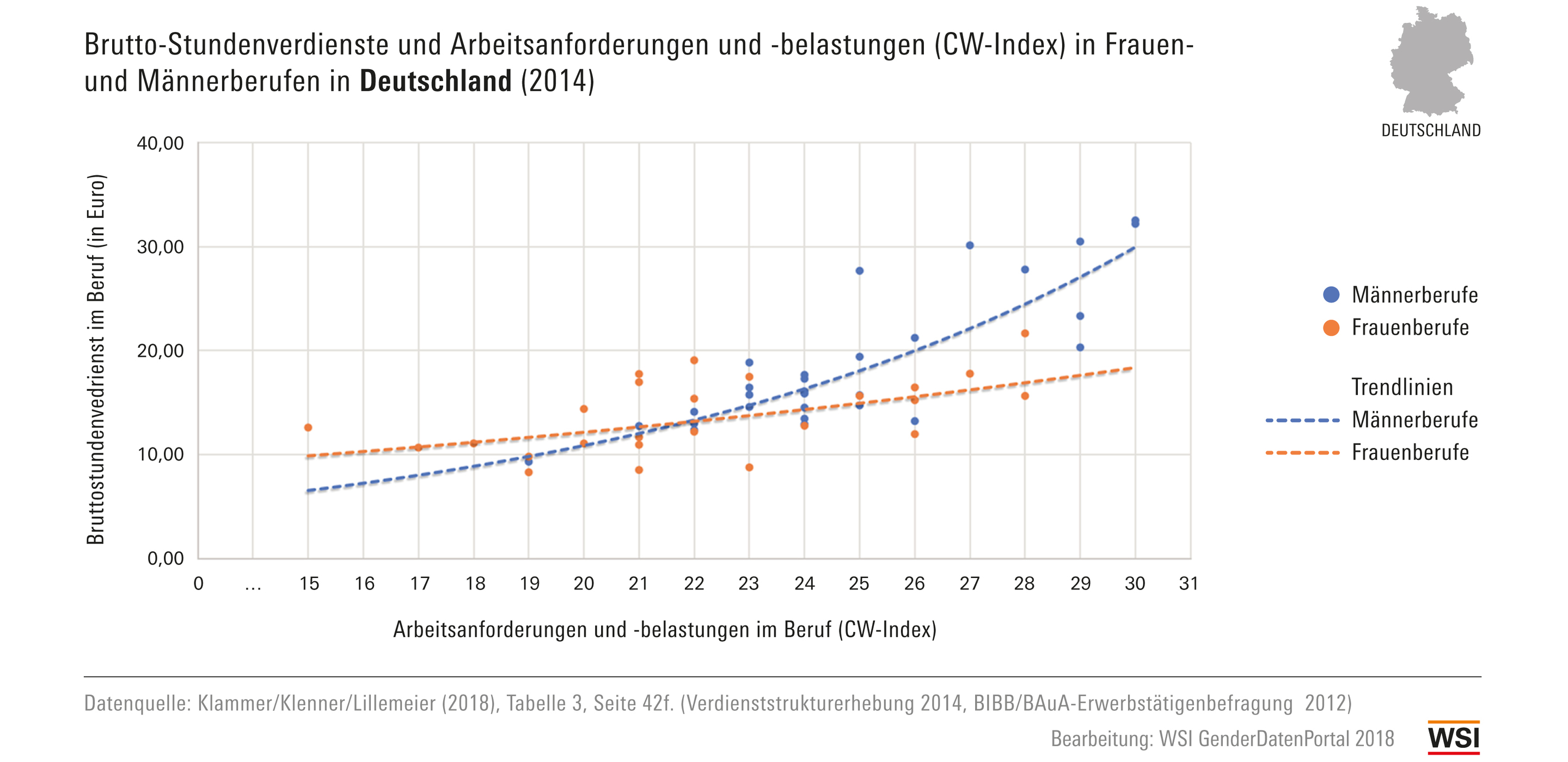 WSI GenderDatenPortal: Einkommen: Anforderungen und Verdienste in Frauen- und Männerberufen (CW-Index)