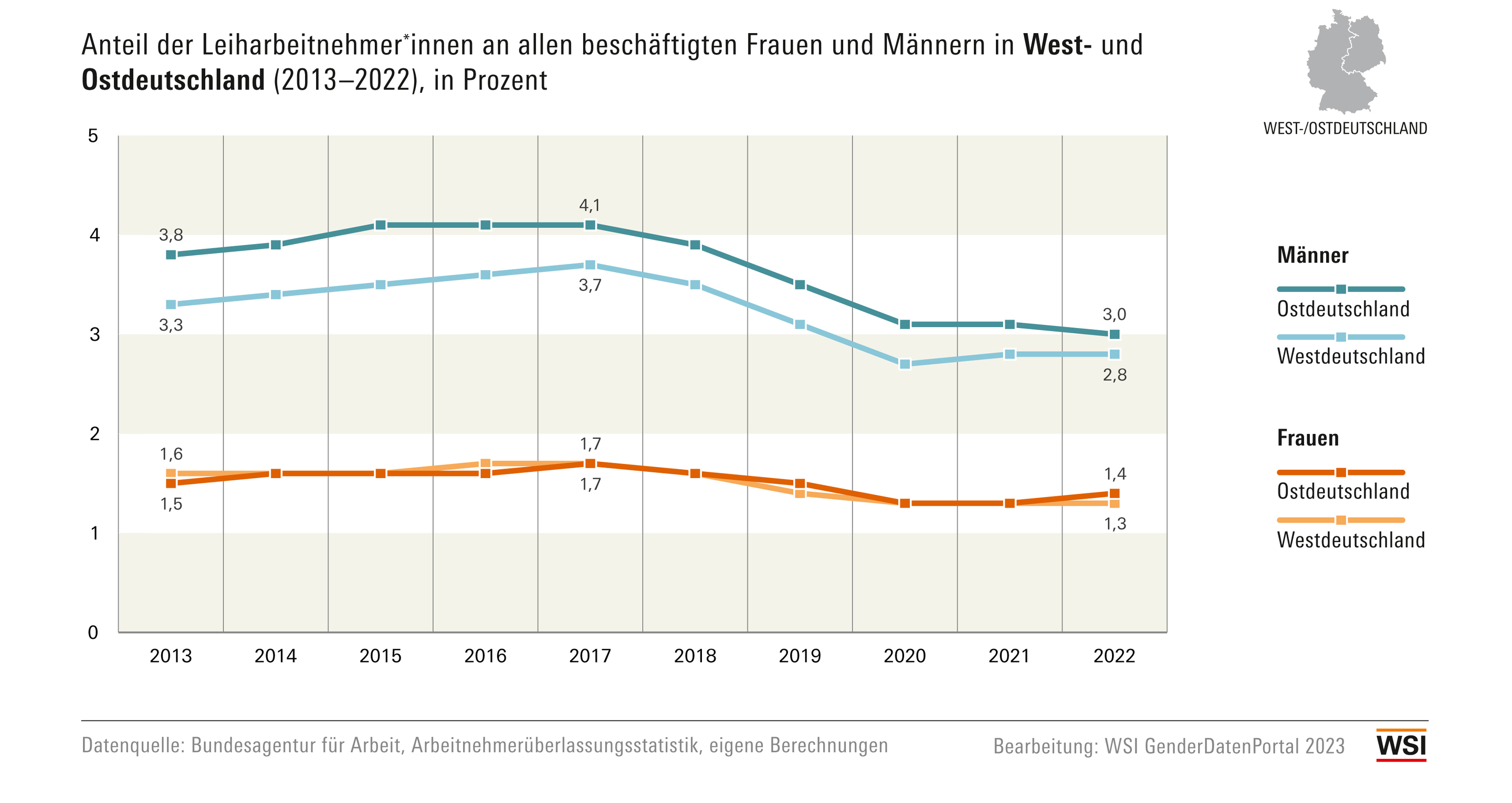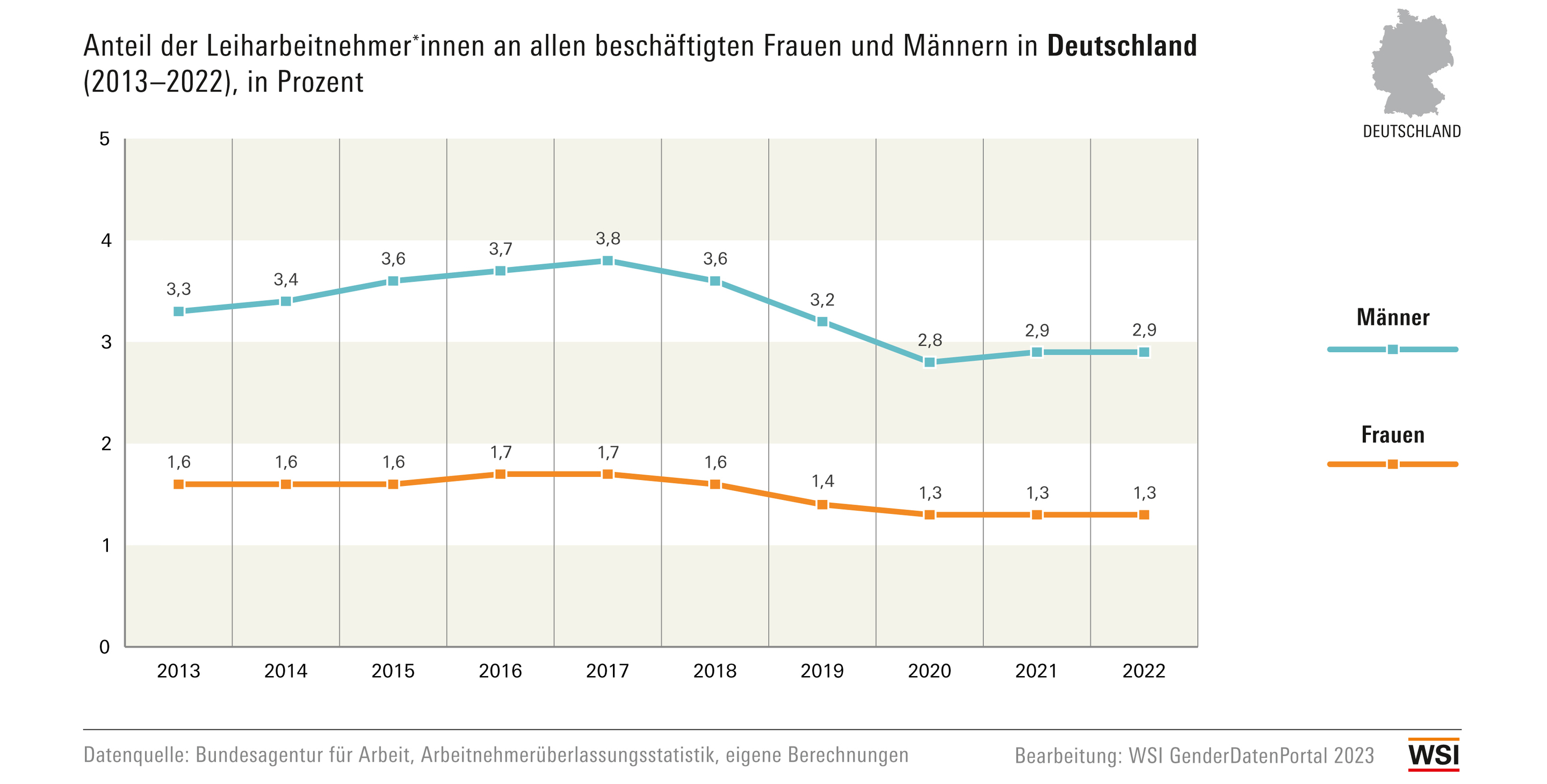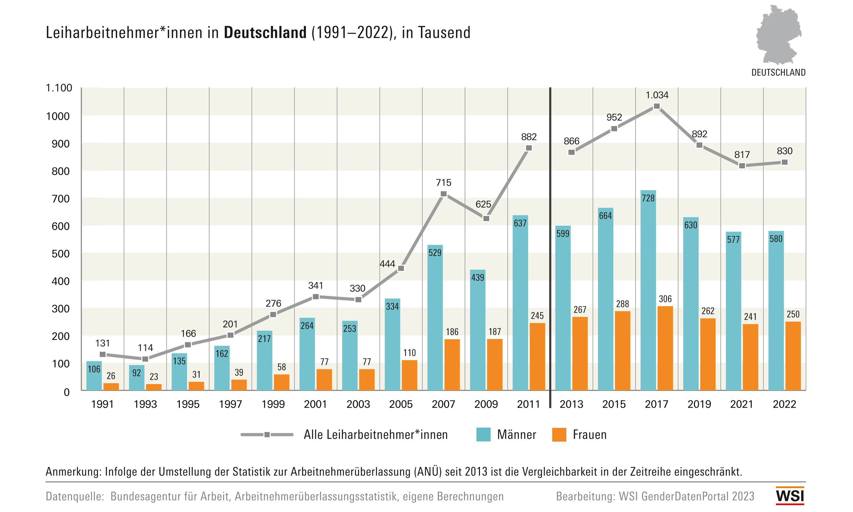 WSI GenderDatenPortal: Erwerbsarbeit: Leiharbeit 1991-2022