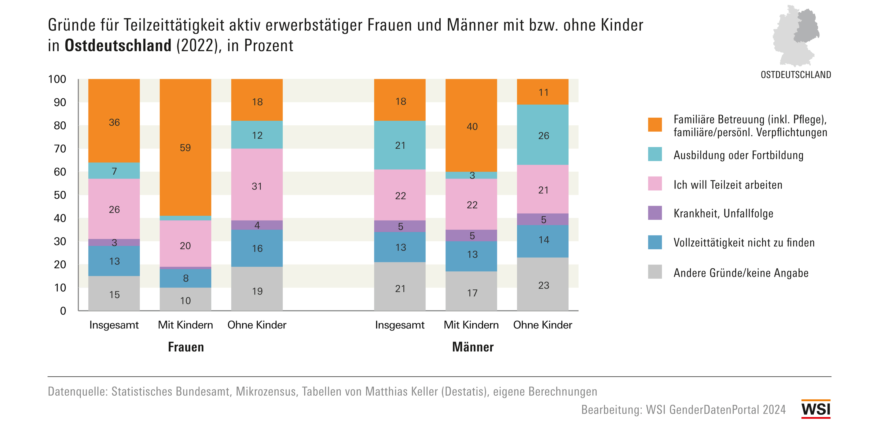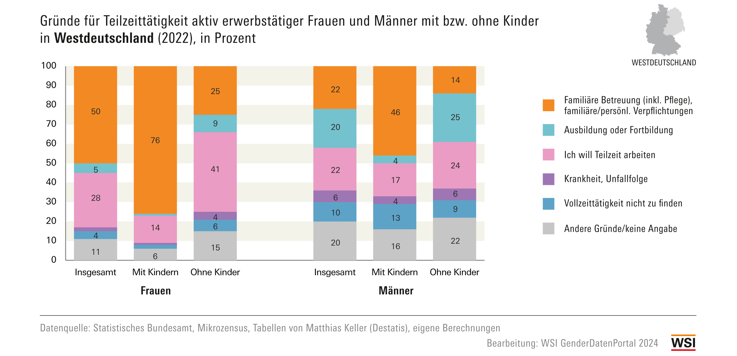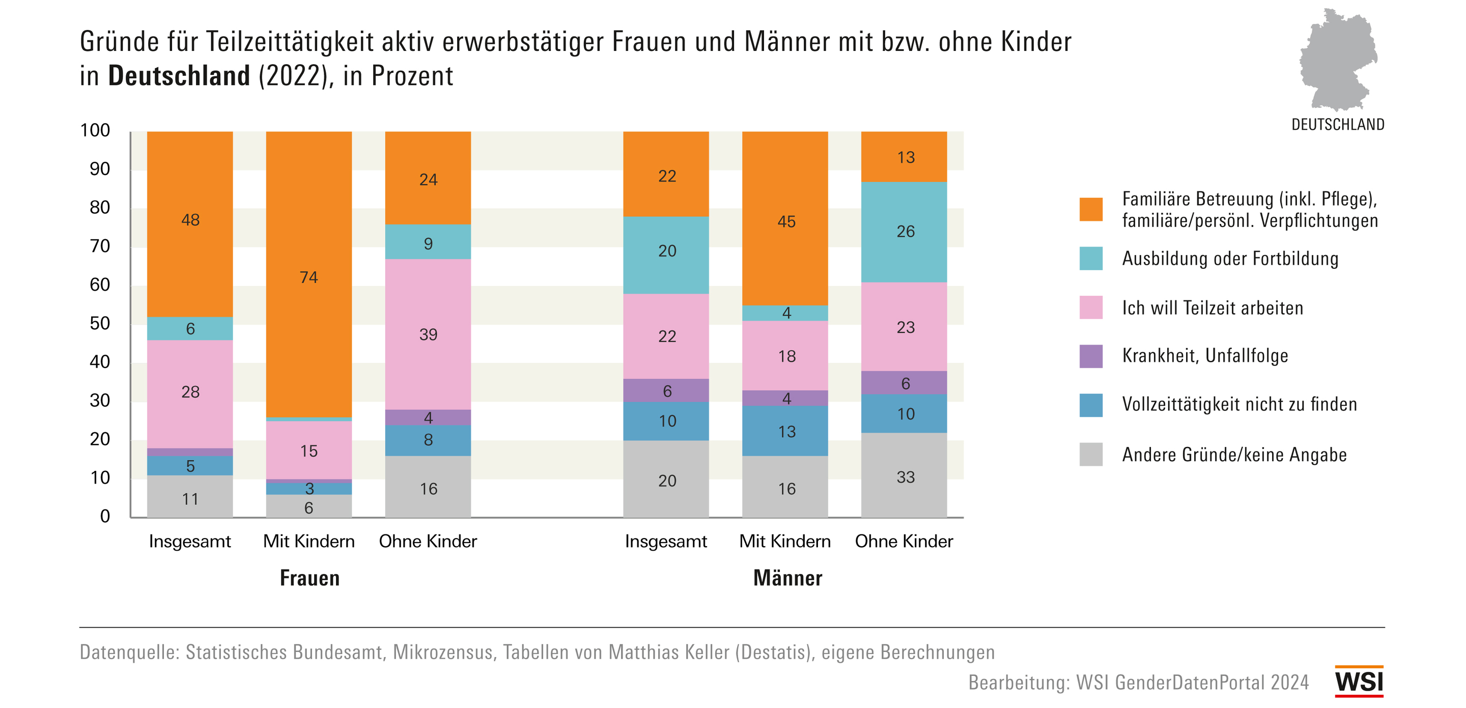 WSI GenderDatenPortal: Zeit: Gründe für Teilzeittätigkeit nach Elternschaft 2022